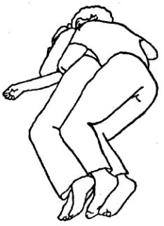 Поза «объятия», принимаемая иногда партнерами, исключительно любящими друг друга,P это поза крайней телесной интимности во сне. Партнеры лежат на боку, лицом к лицу, крепко держат руками друг друга, как бы сливаясь в одно существо.